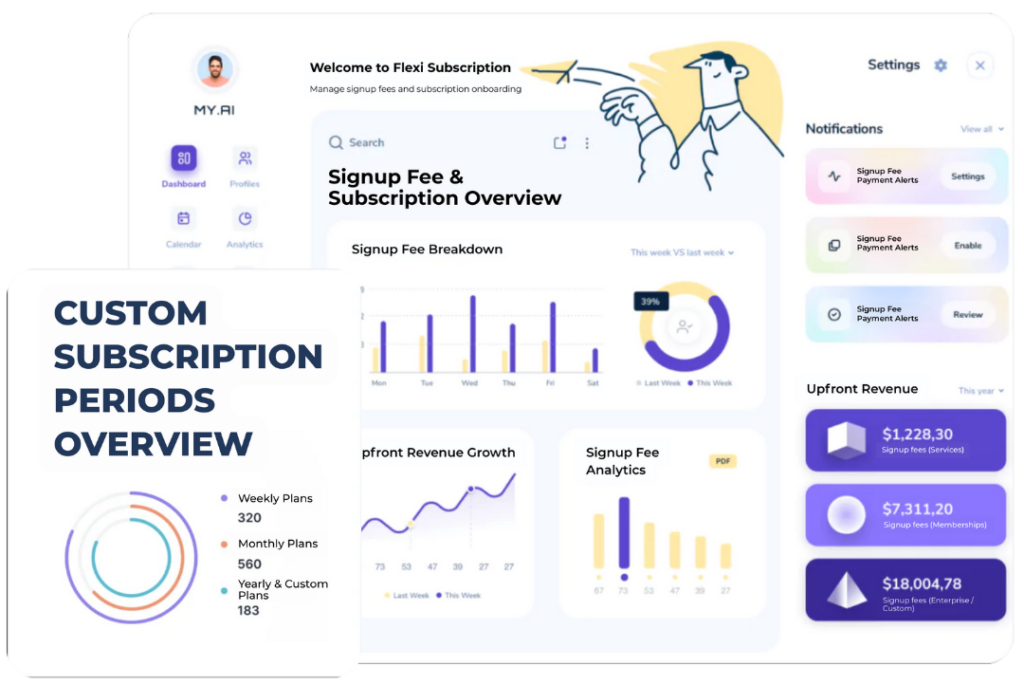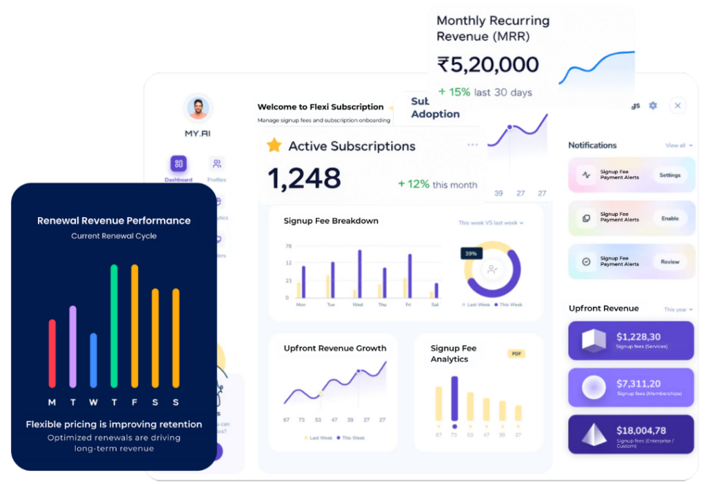 Charge a one-time signup fee for new subscribers to cover onboarding, setup, or initial costs. Flexi Subscription gives you the flexibility to monetize subscriptions from the very first transaction.